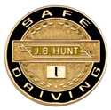 A laurel wreath surrounds the J. B. Hunt logo in this custom safe driver lapel pin. Black color-fill is used on the outside ring and to color in the year amount.