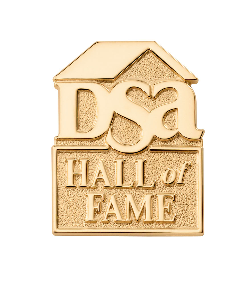 The Direct Selling Association welcomed it's top performers into the Hall of Fame with this classic lapel pin. Their logo slightly overlaps with the rectangular frame below.