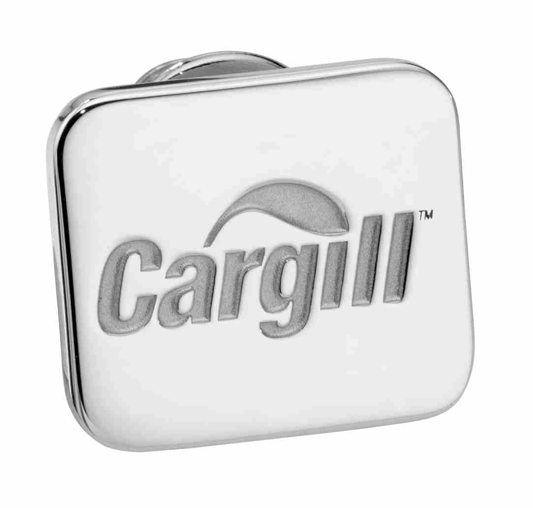 A simple yet elegant custom logo lapel pin, like this one for Cargill, is a great way to promote a business.