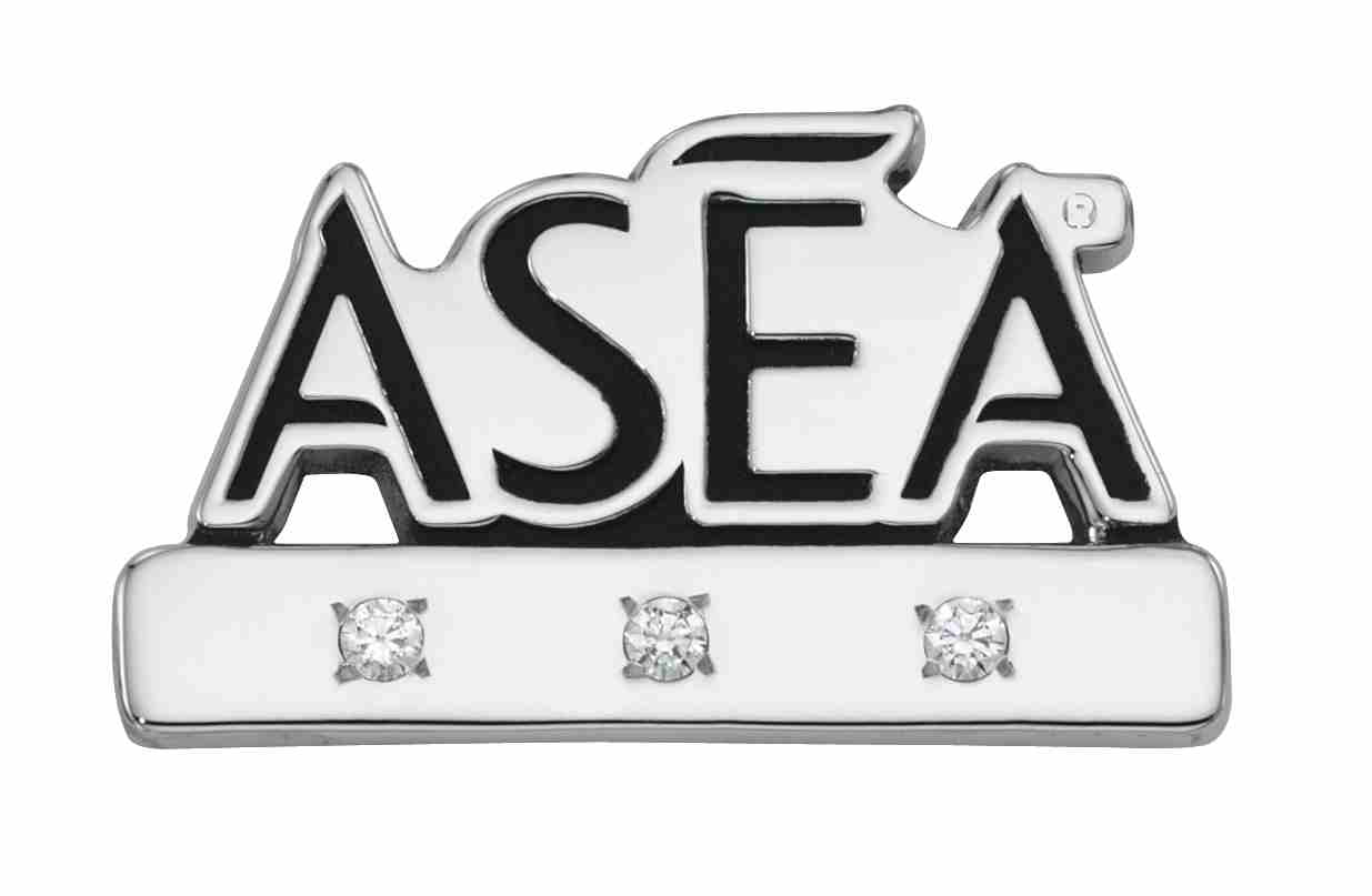 This performance award for ASEA features their logo, colored with black color-fill, over a bar with three symbolic diamonds that correspond with the recipient's achievement.