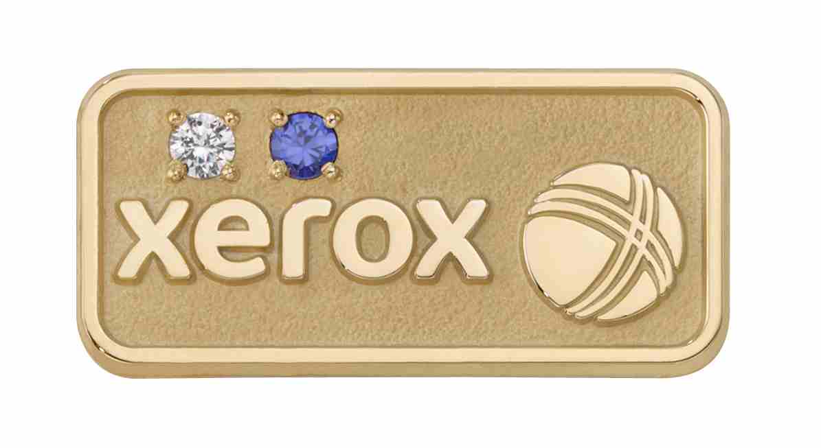 Xerox thanked its employees for their years of service with these custom lapel pins. Symbolic stones represent the recipient's time with the company.
