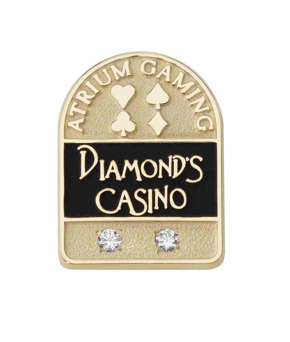 This years of service award for Diamonds Casino features their logo surrounded by black color-fill. Above it are the four suit symbols and the area of the casino the recipient works in. Below are two symbolic diamonds to represent their length of time with the company.