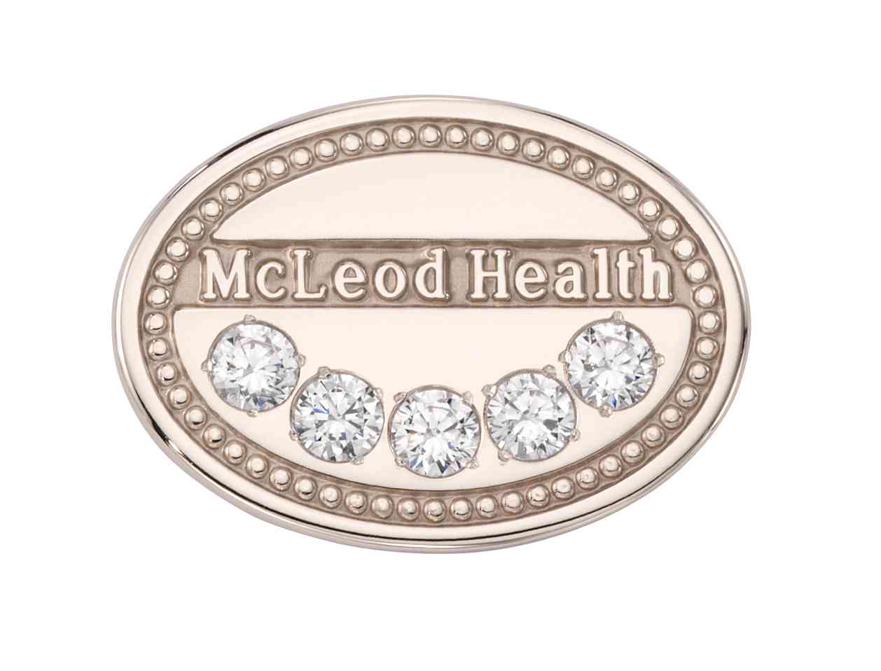 McLeod Health honored its employees for their years of service with this beautiful custom lapel pin. Metal detailing creates a frame around the pin and symbolic diamonds represent the recipient's length of service.