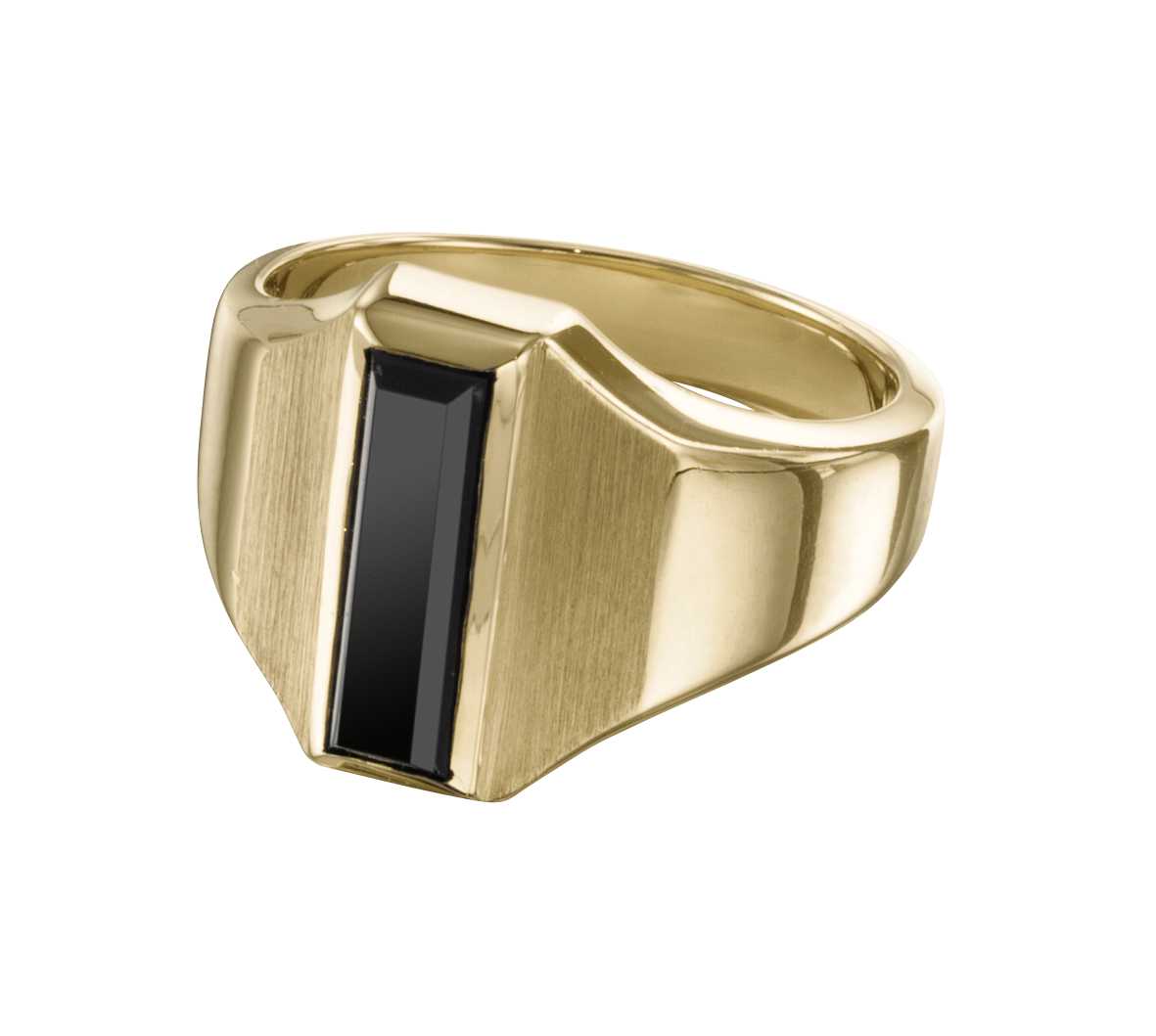 A baguette-cut black onyx stone steals the show in this bold 10 karat gold women's award ring.