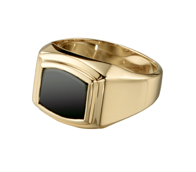 A rounded rectangular black onyx stone is the focus of this sleek sterling silver men's award ring