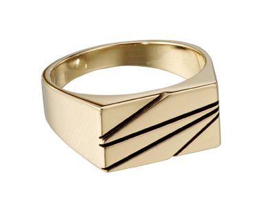 Black asymmetrical lines cut through this contemporary sterling silver men's award ring