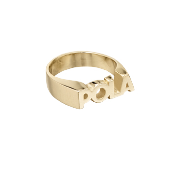 The company name is cast in 14 karat gold in this dignified women's sales award ring.